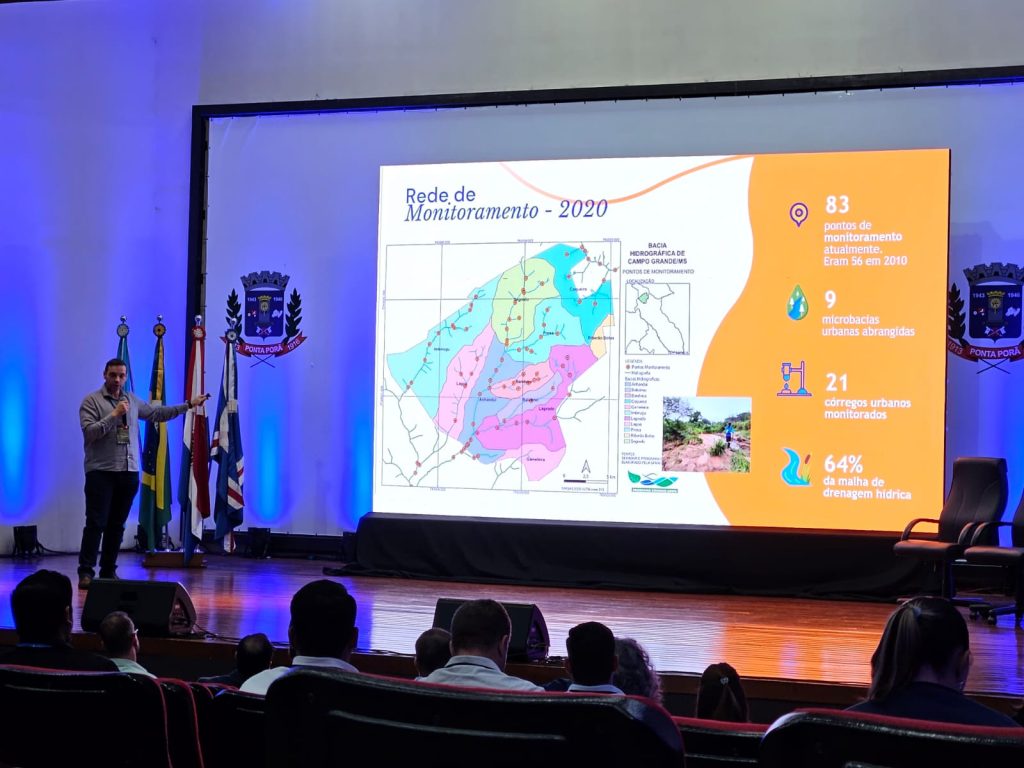 Durante a programação, o diretor-executivo da Ambiental MS Pantanal, Clayton Bezerra, apresentou os resultados do Programa Córrego Limpo no painel “Reconectando a Cidade com a Água: Restauração de Córregos, Qualidade Hídrica e Segurança para o Futuro”.